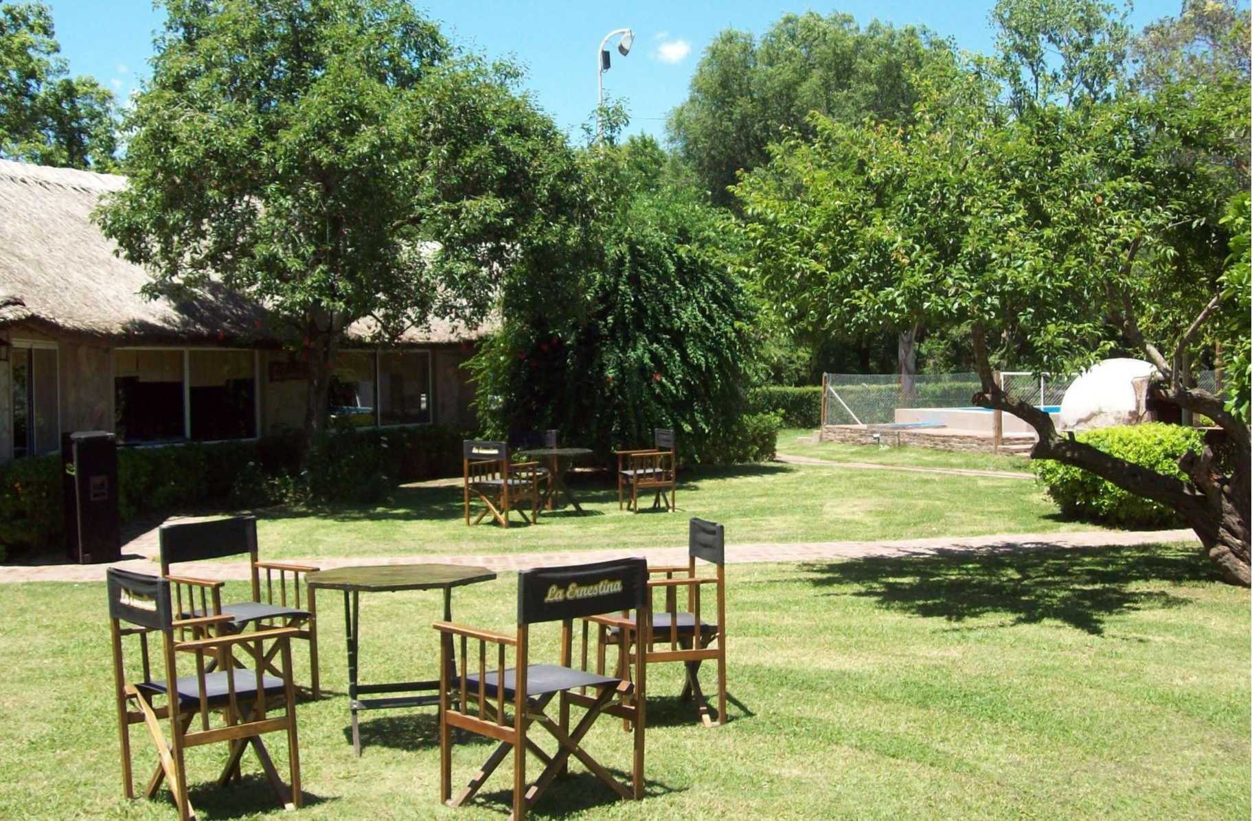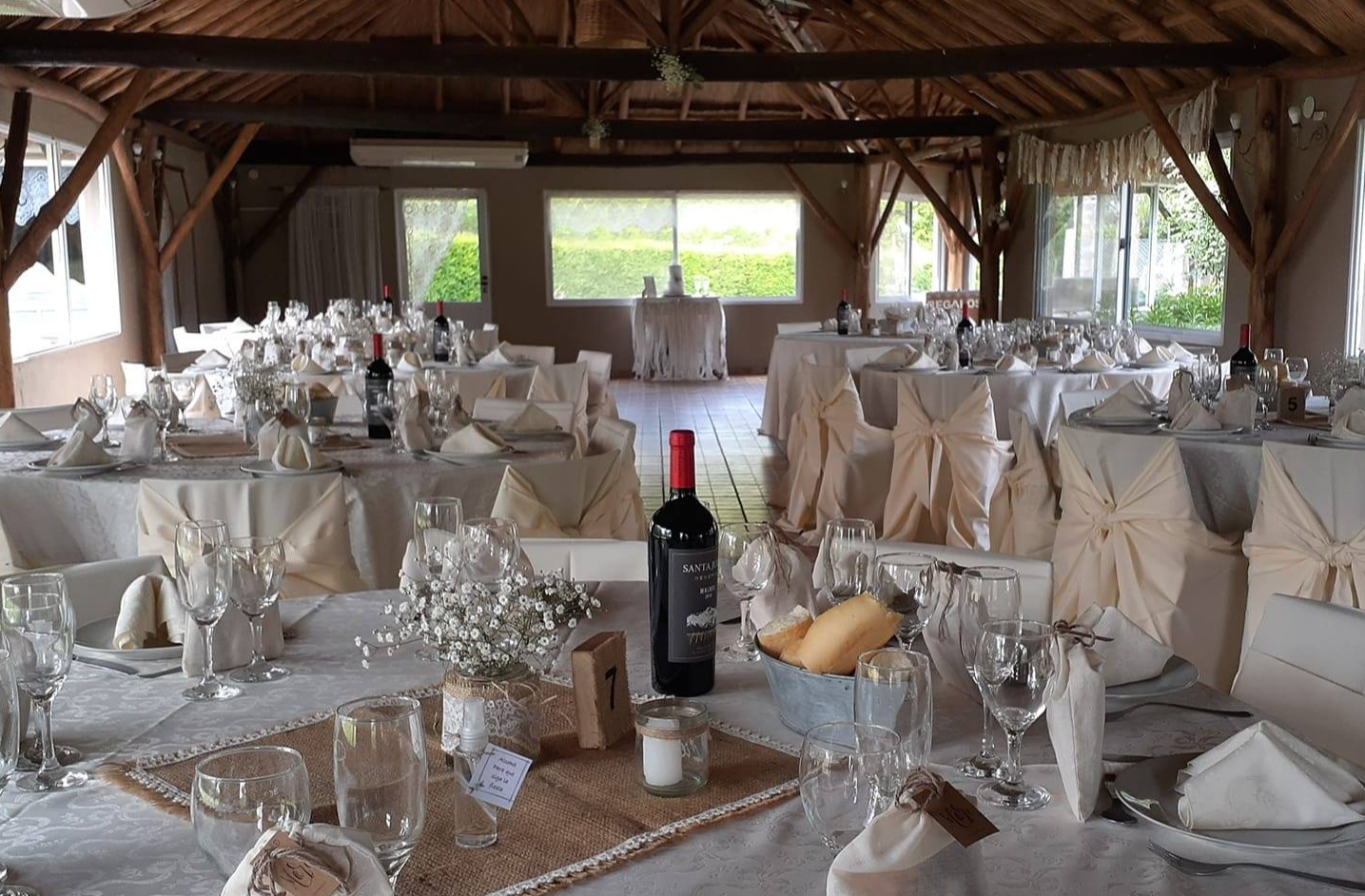 El salón, el cual está habilitado para 130 personas, encontrarán mesas redondas, sillas de algarrobo y unos ventanales espectaculares que permiten disfrutar de las vistas en todo momento. En el parque encontraran árboles de muchísimas especies: pinos, ceibos, magnolias, nogales, cítricos, ciruelos entre otros. A escasos 600 metros encontrarán una pequeña iglesia llena de encanto, La Capilla San Pedro.